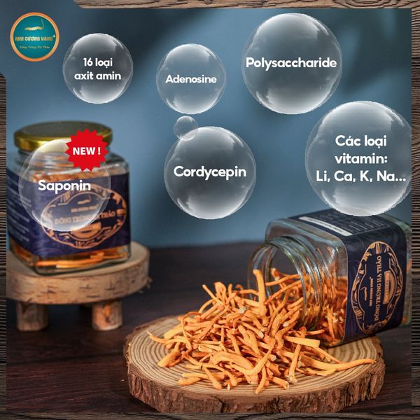 Đông Trùng Hạ Thảo được nuôi cấy đặc biệt với dưỡng chất từ Sâm dây Ngọc Linh và Tổ Yến. Sản phẩm được bổ sung hoạt chất Saponin quý giá, thành phần quan trọng nhất của Sâm dây Ngọc Linh với mong muốn mang lại sức khoẻ tốt nhất cho người sử dụng.